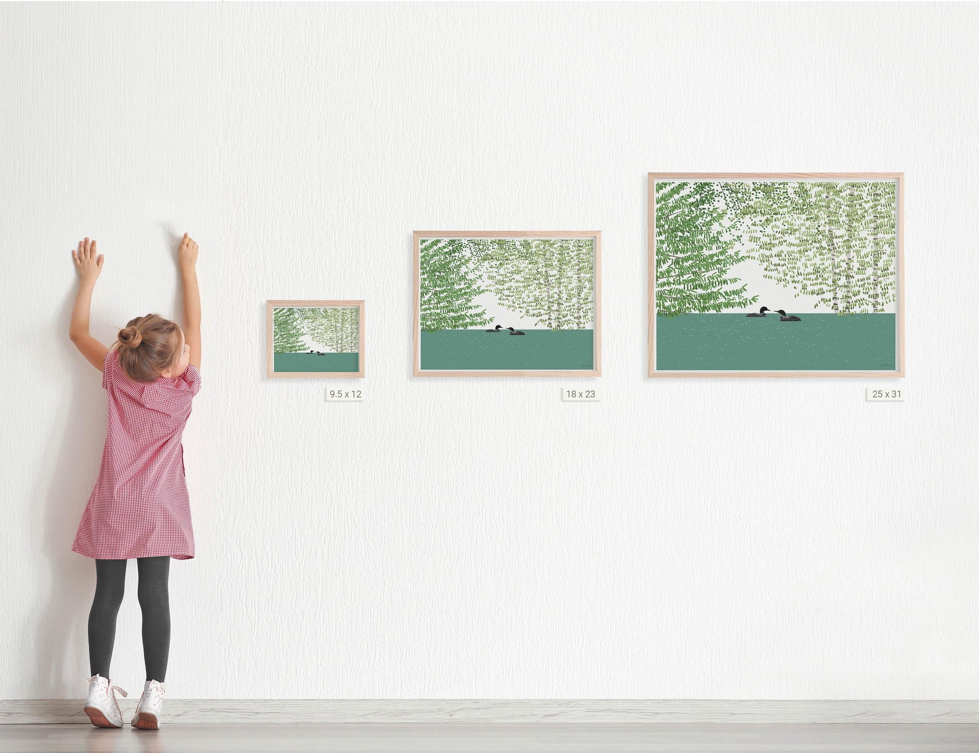 Capture the beauty of a peaceful afternoon by the lake with my "Two Loons" art print. This calming piece features a pair of loons gliding gracefully across the water. Perfect for nature lovers and those who appreciate the charm of lake environments.