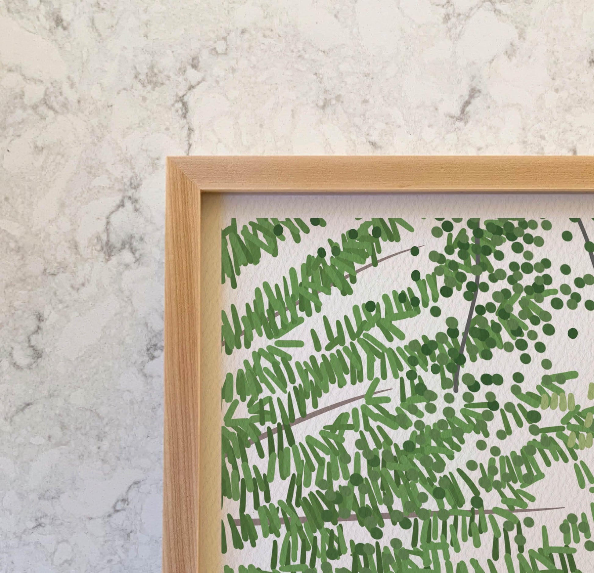 Choose between unframed or framed options. Our sustainably sourced solid maple frames arrive ready to hang and perfectly complement the artwork. Unframed prints are available in standard sizes, allowing you the flexibility to choose a frame that fits your style. Custom sizing is available upon request.