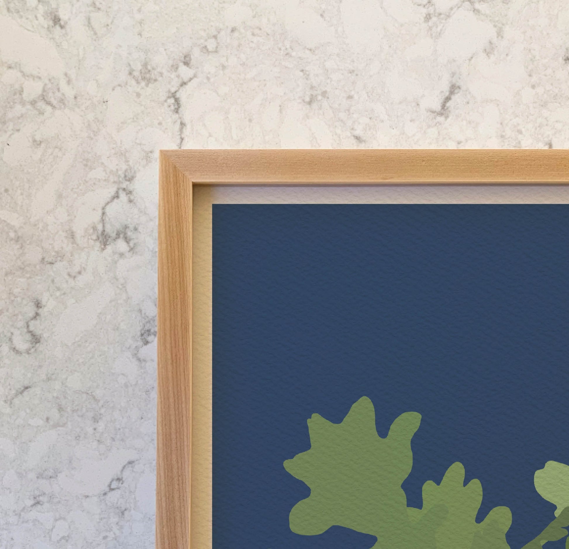 Choose between framed or unframed to suit your preference. Our thoughtfully selected frames, made from sustainably-sourced solid maple, provide an elegant ready-to-hang presentation that complements the artwork. Alternatively, the unframed prints are available in standard sizes, such as 8"x10" and 16"x20", allowing you to customize the framing. If you're interested in a custom size, let us know and we'll be happy to assist you.