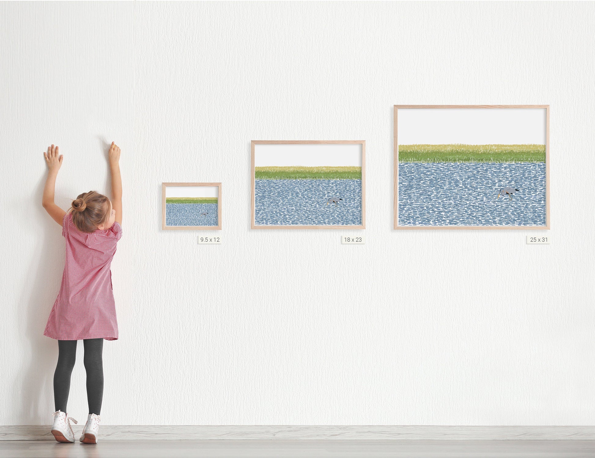 Printed on high-quality archival paper, this art print abstractly depicts the heron amidst the tranquil wetlands. The intricate details and serene palette bring to life the stillness and harmony of the environment. Each print is thoughtfully created, signed, and printed by me, ensuring its authenticity and adding a personal touch.