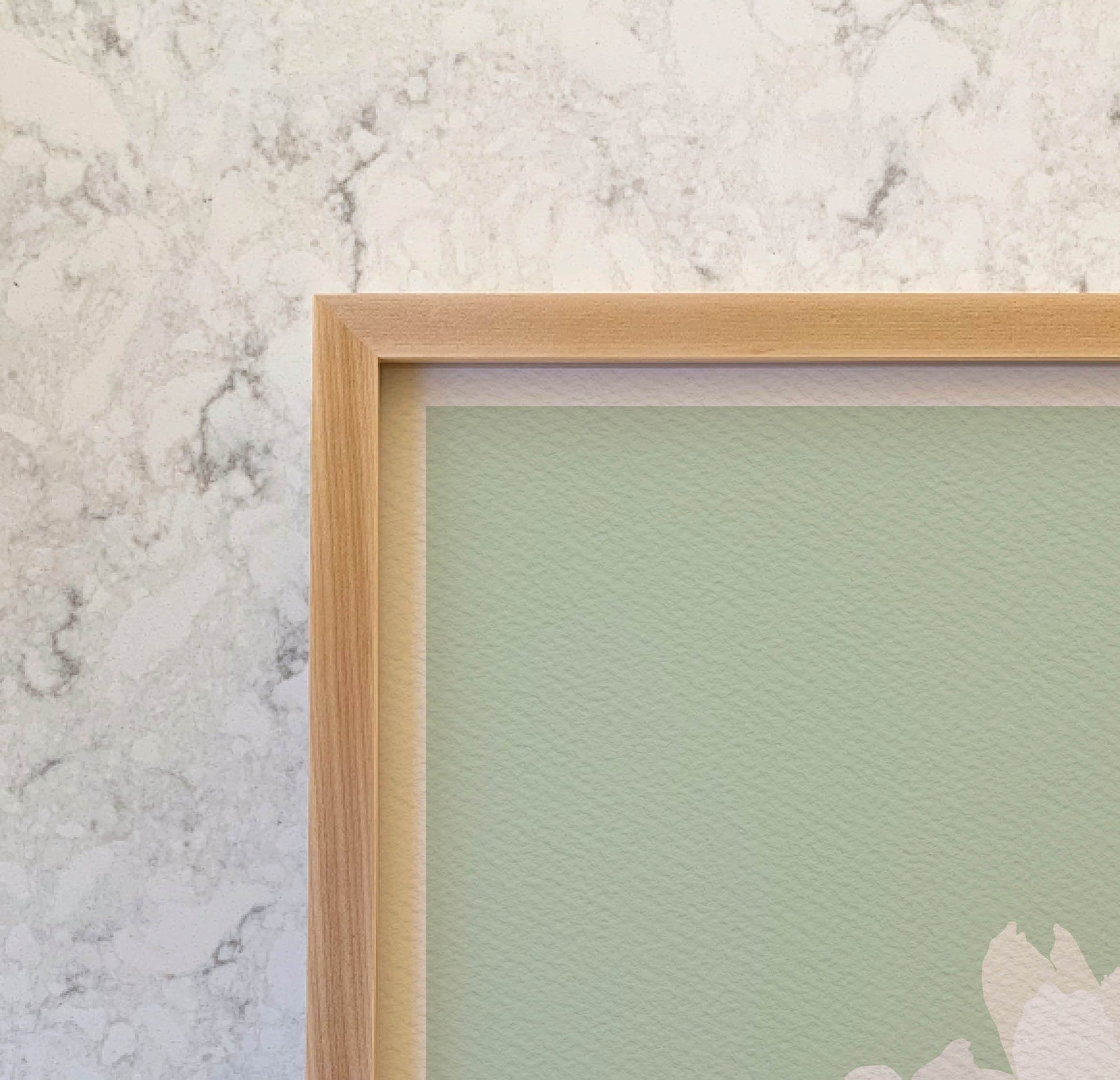 Choose between framed or unframed art. Our thoughtfully selected frames, made from sustainably sourced solid maple, arrive ready to hang and complement the artwork. Alternatively, unframed prints are available in standard sizes, such as 8"x10" and 16"x20," making it easy to choose your own frame. Custom sizes are also available upon request.