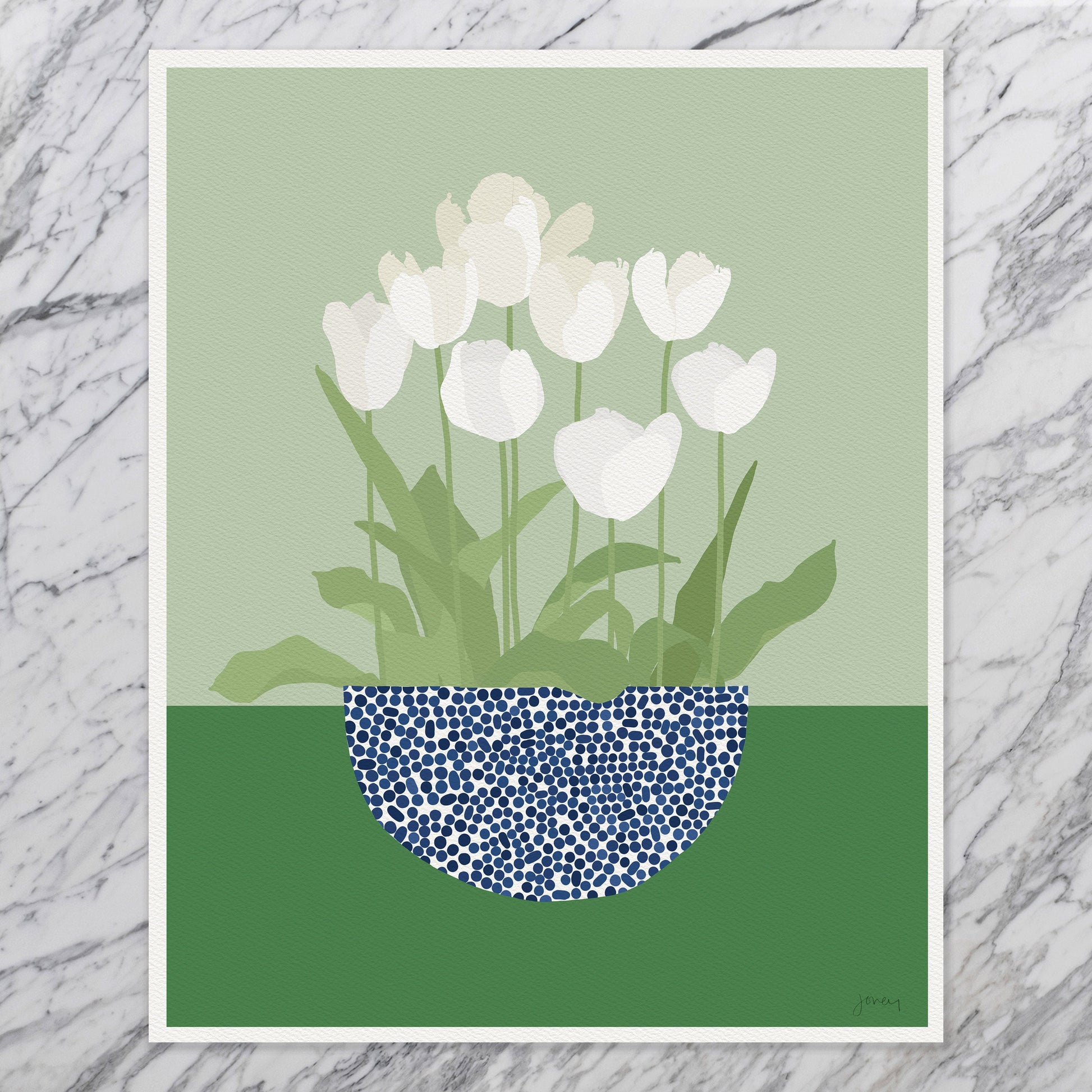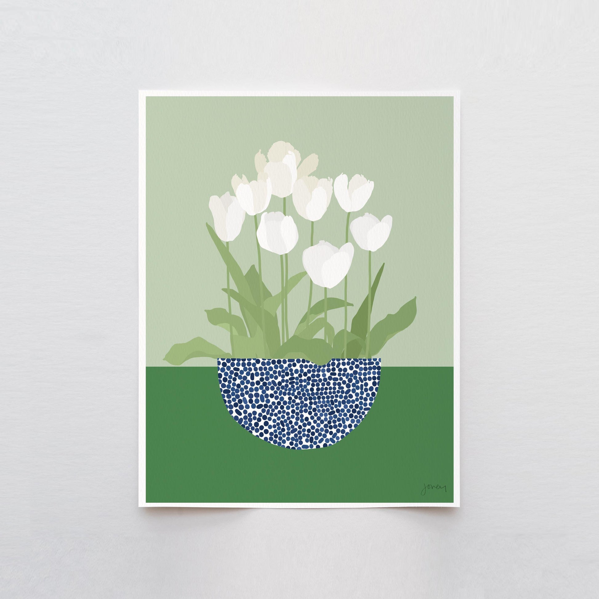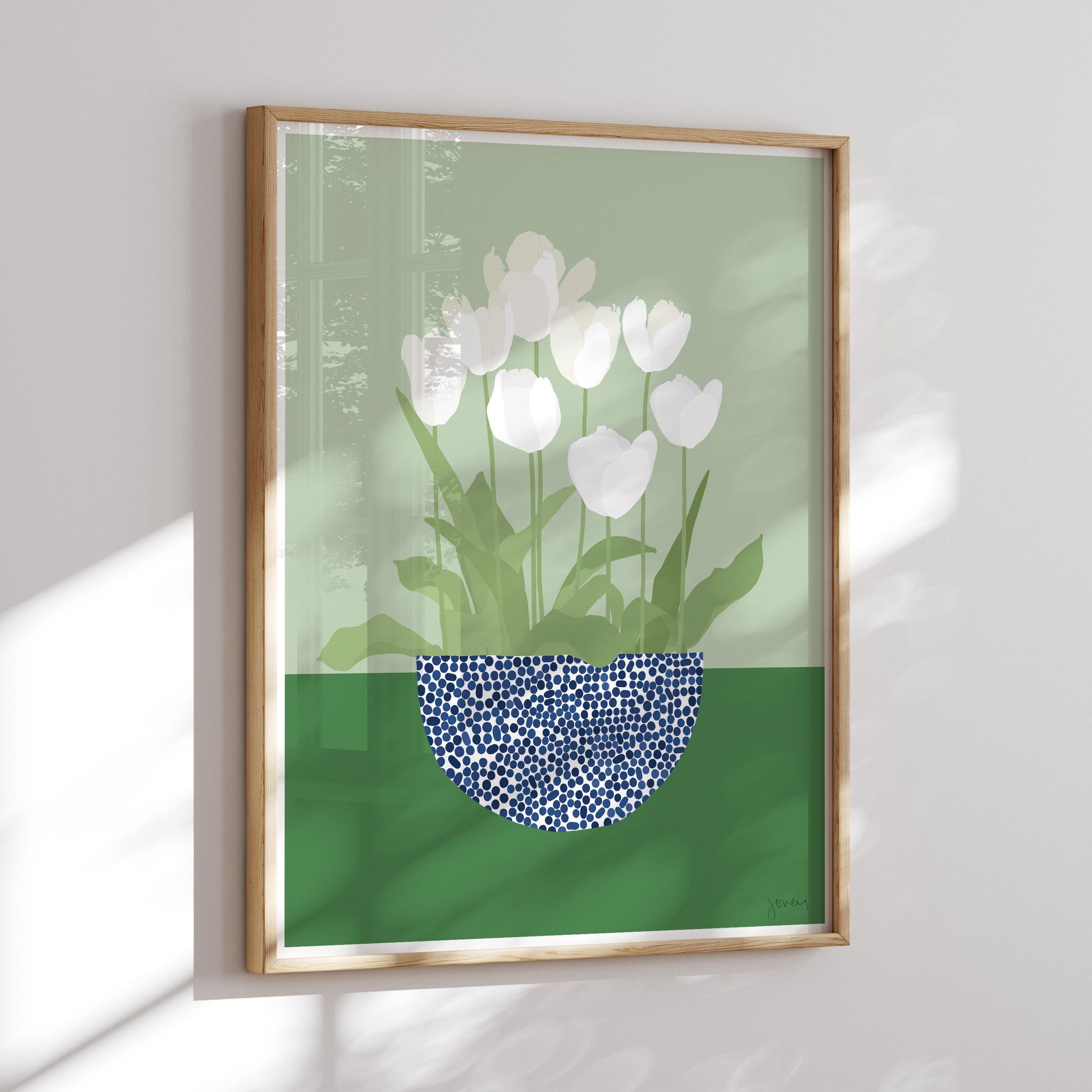 Add beauty to your home with our "White Tulips" art print, a timeless and graceful addition to space.