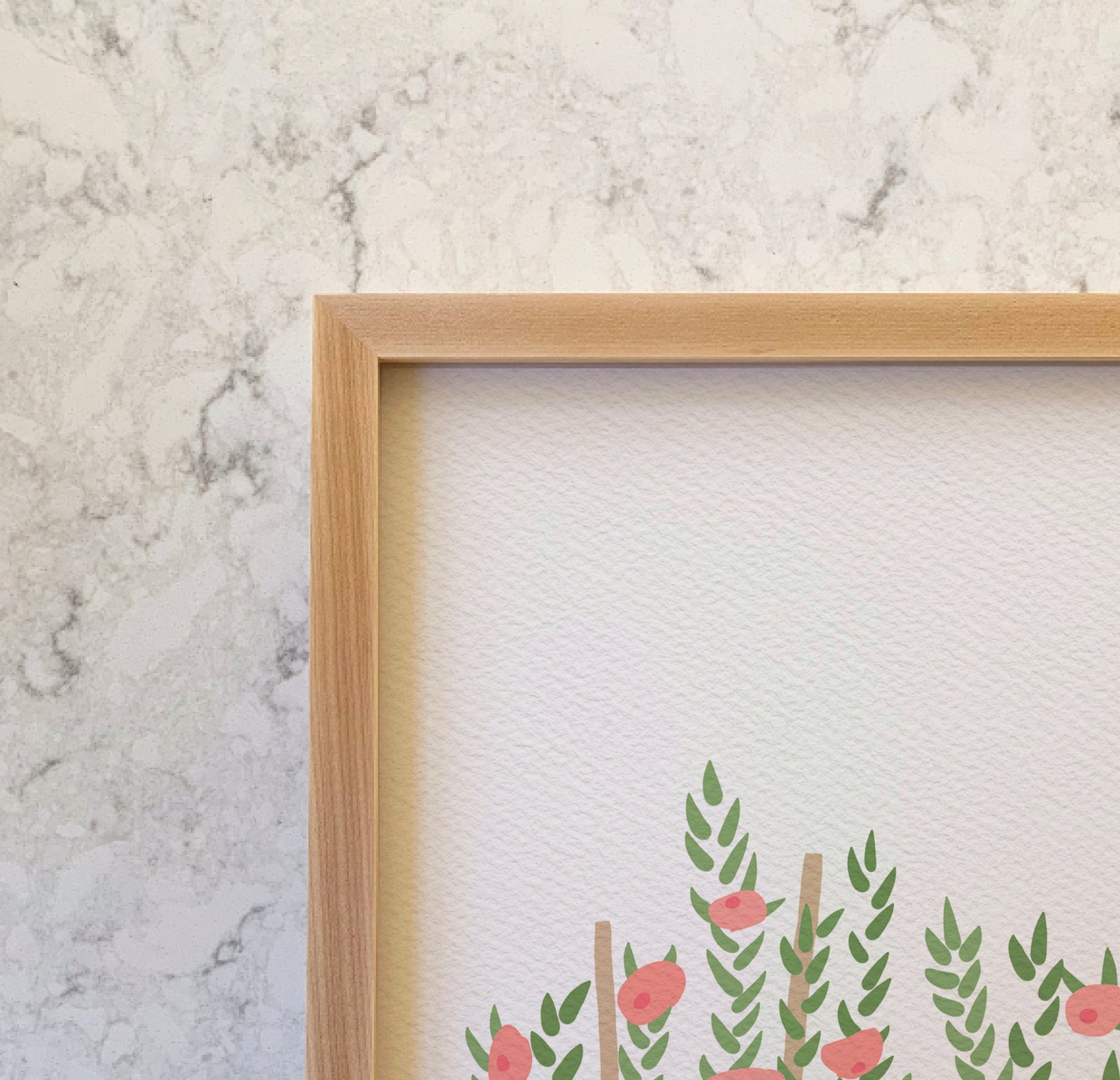 Choose between framed or unframed options to suit your decorative preferences. If you go with our carefully-selected frames, made from solid maple, your art arrives ready-to-hang. Alternatively, the 8x10 inch and 16x20 inch unframed prints are sized to fit standard, ready-made frames, allowing you to personalize the framing to match your existing decor.